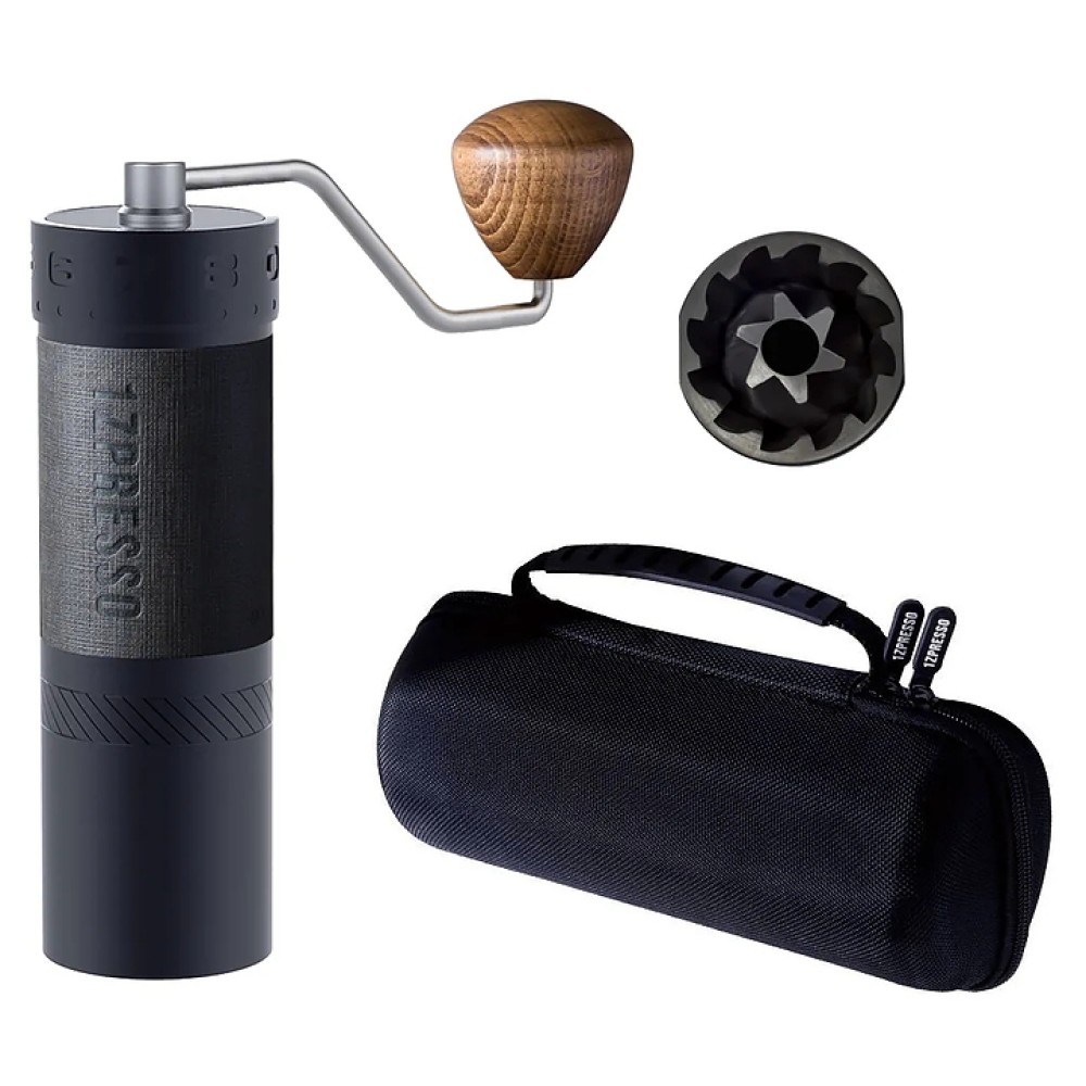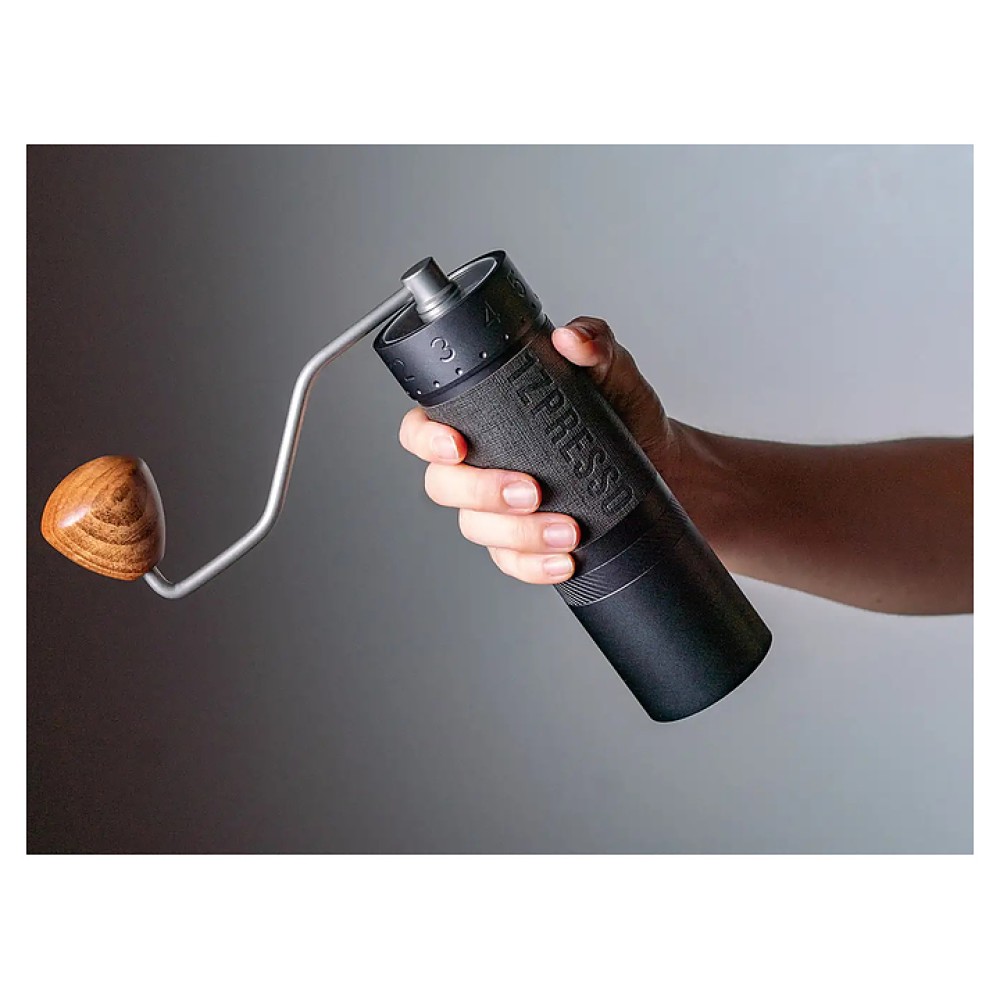 Ручная кофемолка 1Zpresso J-max используется на предприятиях общественного питания и торговли, в офисах и частных домах для получения молотого кофе из зерен. Модель оснащена большими жерновами. Жернова выполнены из нержавеющей стали с титановым напылением.