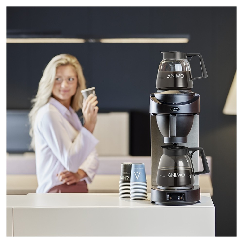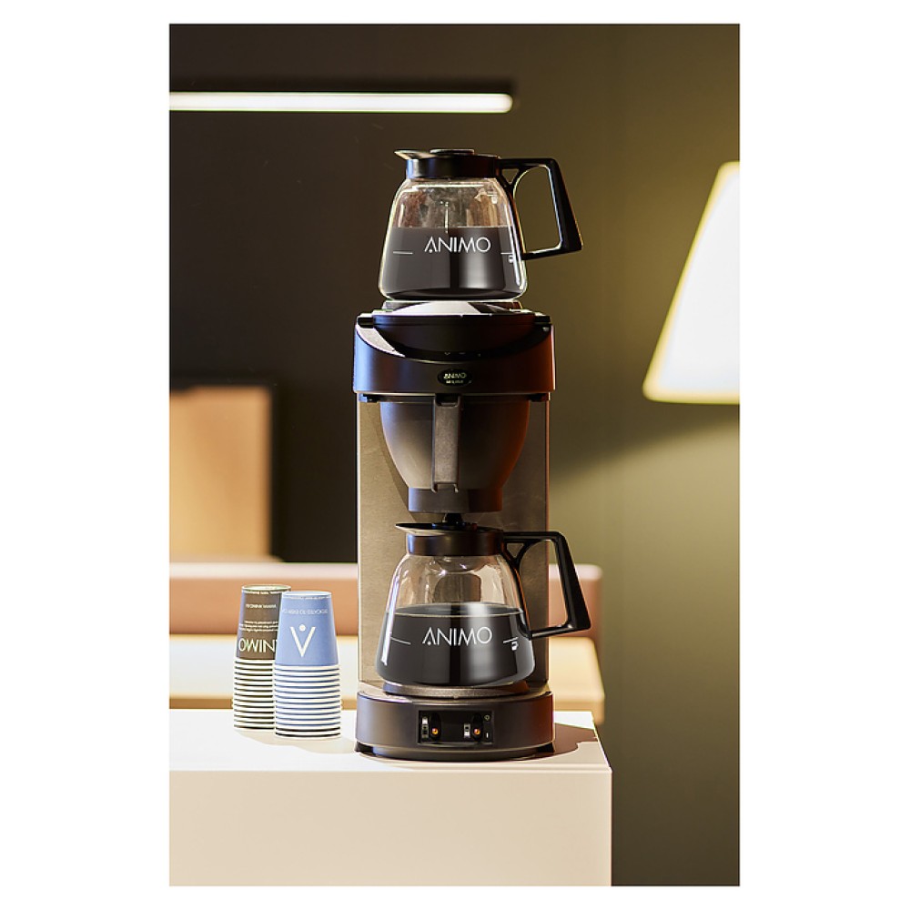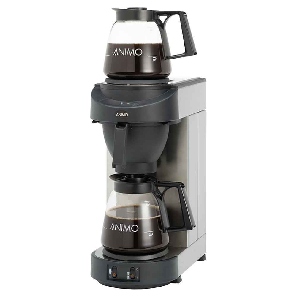 Кофеварка Animo M100 серии M-line используется на предприятиях общественного питания и торговли, в квартирах и офисах для приготовления кофе различных видов и крепости, чая. Модель оснащена подогревающими плитками, устройством, предотвращающим включение кипятильника при отсутствии воды, и звуковым оповещением готовности кофе. Изделие выполнено из нержавеющей стали и ударопрочного пластика.