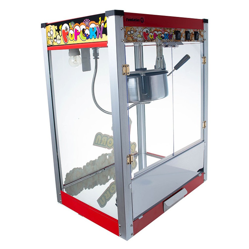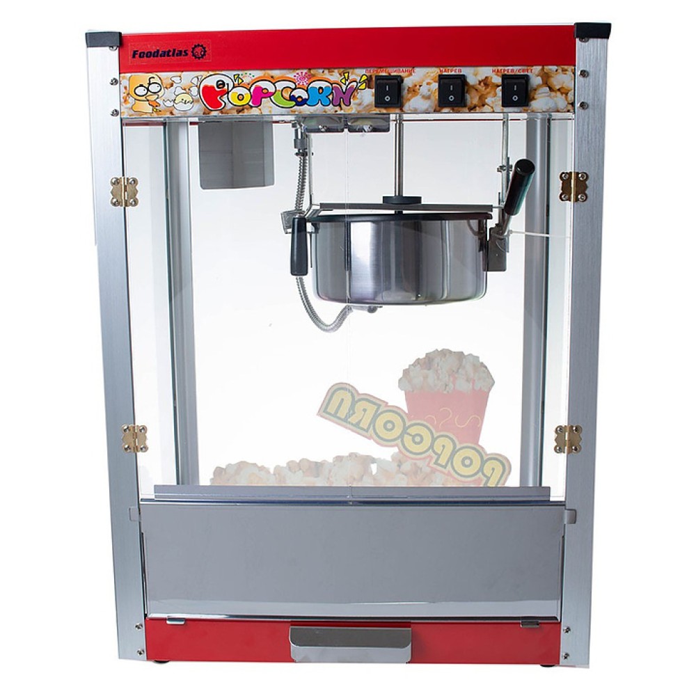Аппарат для попкорна Foodatlas HP-6A используется на предприятиях общественного питания и торговли. Модель оснащена нагревательным элементом, подсветкой и лотком для сбора мусора. Корпус выполнен из алюминиевого сплава и закаленного стекла , поддон - из нержавеющей стали, чаша - из алюминия с антипригарным покрытием.