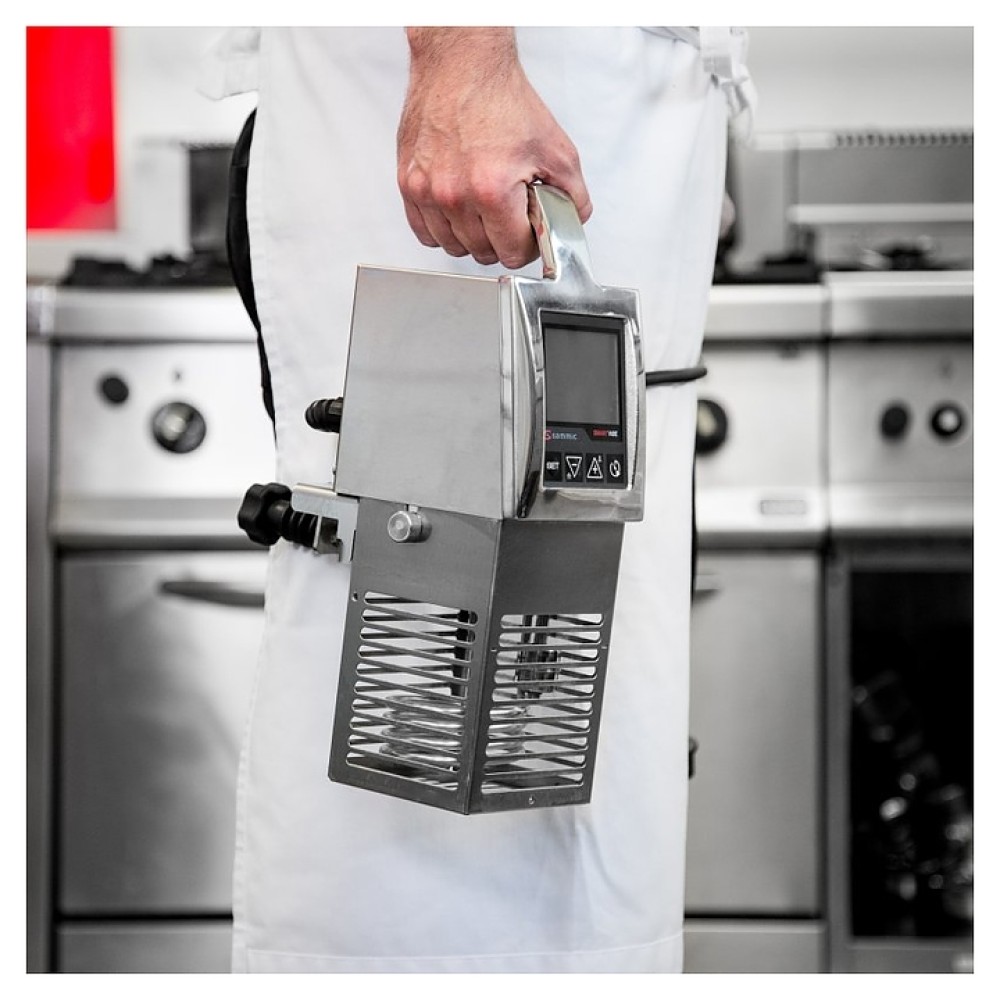 Аппарат Sammic SmartVide 9 используется на предприятиях общественного питания и торговли для приготовления блюд по технологии су-вид (Sous Vide). Модель оснащена влагонепроницаемой панелью управления с 4 функциональными клавишами и полноцветным TFT-дисплеем. Корпус и рукоятка выполнены из нержавеющей стали.