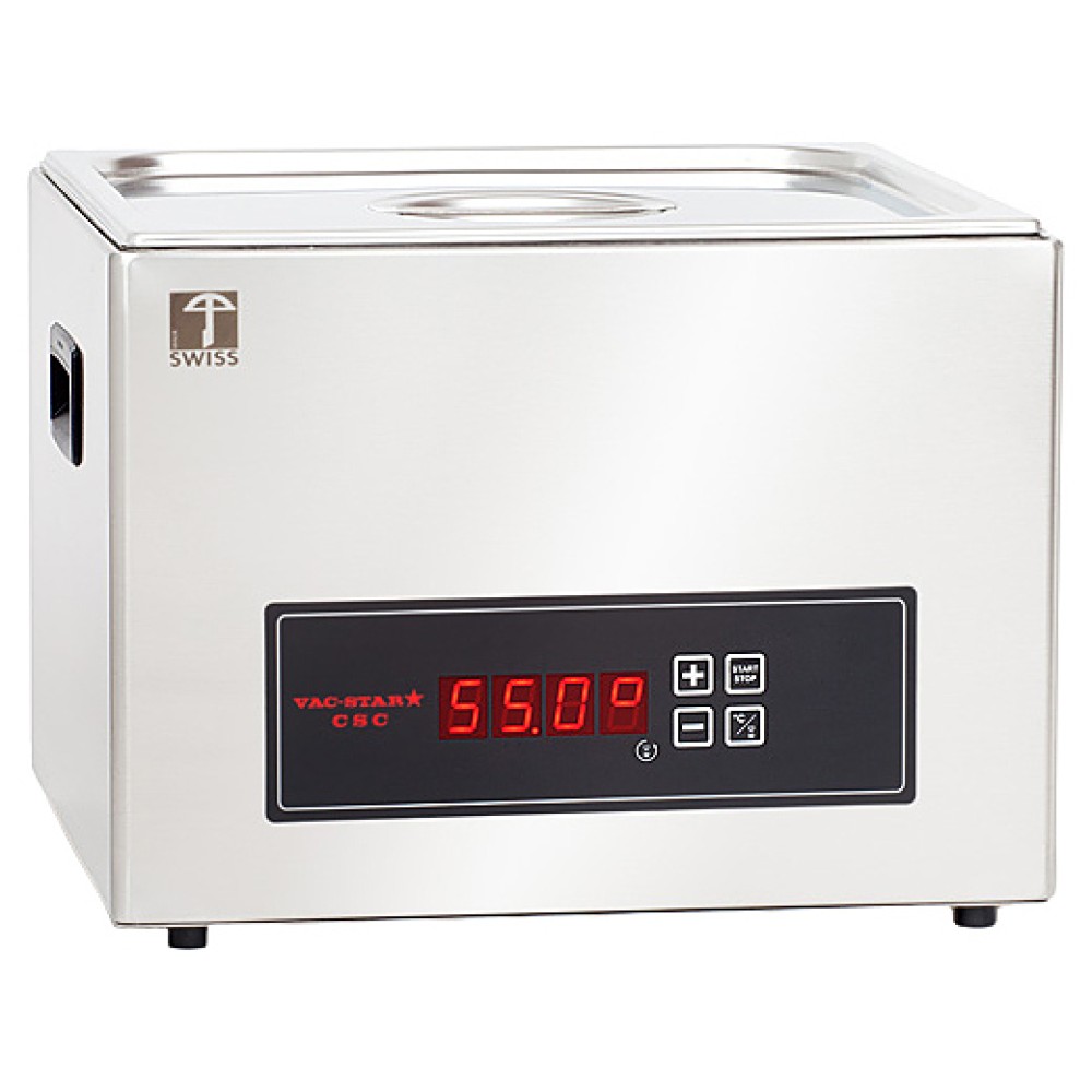 Водяная баня VAC-STAR CSC-Medium используется на предприятиях общественного питания и позволяет готовить деликатесные блюда по технологии Sous Vide, придавая им нежнейший вкус и сохраняя все важные микроэлементы продуктов. Особенность данного оборудования состоит в том, что продукты перед непосредственным приготовлением помещают в упаковку, из которой полностью удаляется воздух. Затем вакуумные пакеты помещают в воду и готовят. Бесшовный корпус выполнен из высококачественной нержавеющей стали.