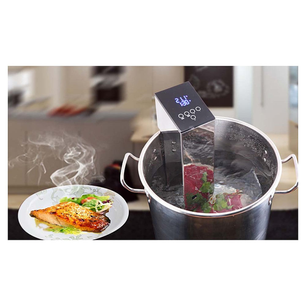 Термостат Airhot SV-20 используется на предприятиях общественного питания и торговли для приготовления блюд по технологии Sous Vide, придавая им нежнейший вкус и сохраняя все важные микроэлементы продуктов. Модель оснащена электронной панелью управления, циркуляционным насосом, настройкой температуры в C° и F° и таймером на 99 часов. Корпус выполнен из нержавеющей стали.