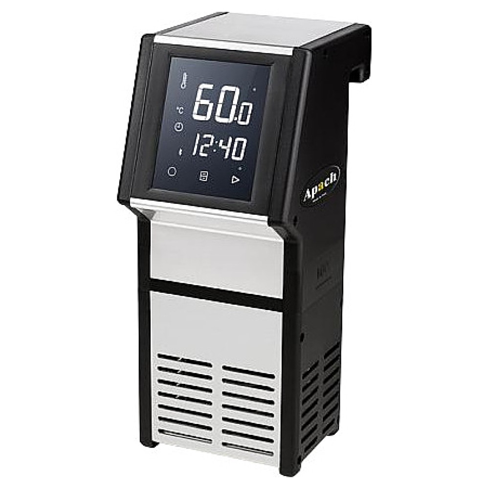 Ротационный кипятильник Apach ASV WI-FOOD предназначен для приготовления широкого спектра блюд по технологии Sous Vide на предприятиях общественного питания и торговли. Модель оснащена сенсорным дисплеем с индикацией рабочей температуры, зажимом для закрепления на емкости и циркуляционной помпой, которая обеспечивает заданную температуру по всему объему. Корпус выполнен из анодированного алюминия.