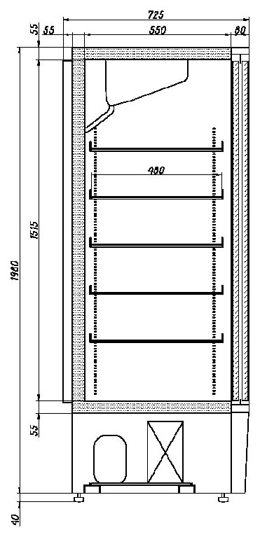| Высота1980 мм | Глубина725 мм | Ширина1600 мм |