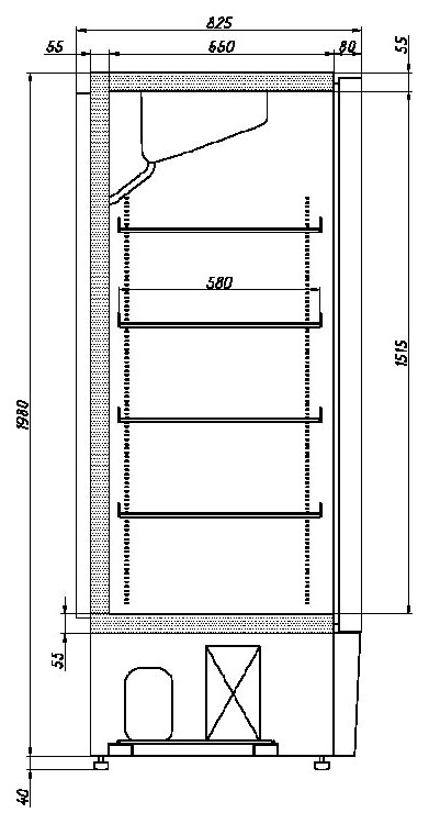 | Высота1980 мм | Глубина825 мм | Ширина800 мм |