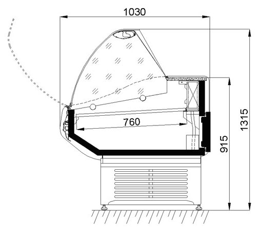 Несколько витрин можно собирать в любую линию с использованием охлаждаемых углов.