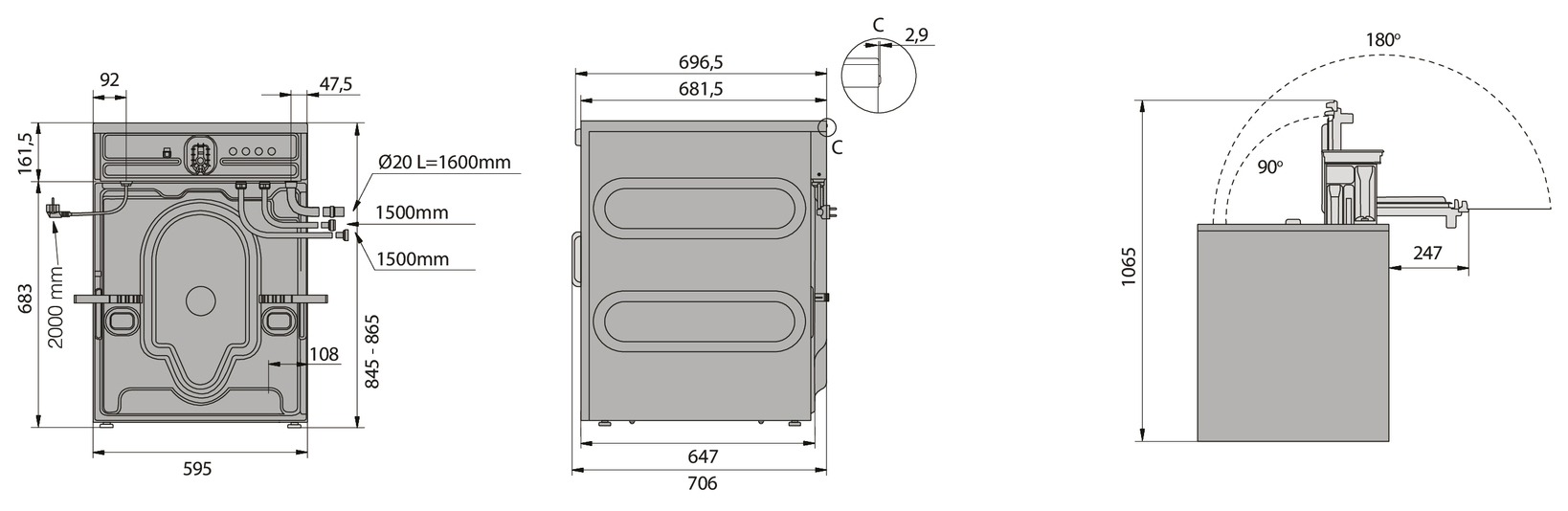 | Высота850 мм | Глубина706 мм | Ширина595 мм |