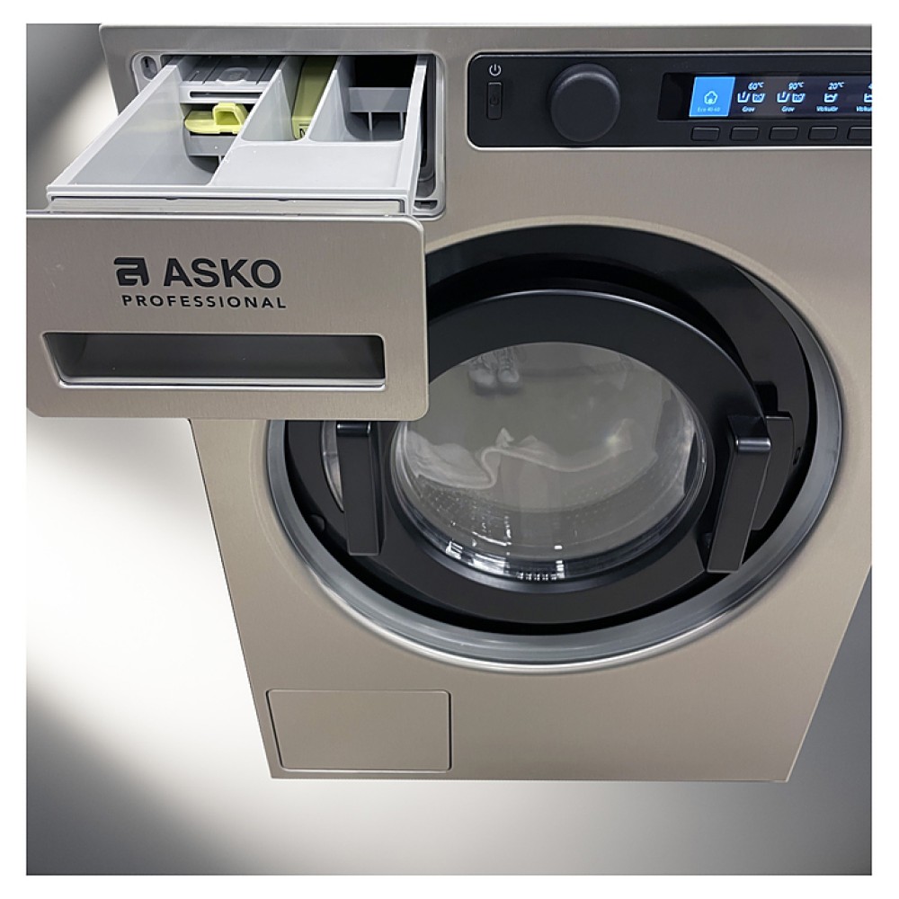 Стиральная машина ASKO WMC8947PI.S используется в прачечных, химчистках и отелях, а также в частных домах и квартирах для стирки, полоскания и отжима белья, ткани и одежды. Модель оснащена ЖК-дисплеем с индикацией времени до окончания программы, выдвижным дозатором с 3 отделениями и регулируемыми по высоте ножками. Барабан и бак выполнены из нержавеющей стали, заливной шланг - из материала PEX с защитой от протечек. Возможность установки стиральной машины в колонну с сушильной решает проблему ограниченного пространства.