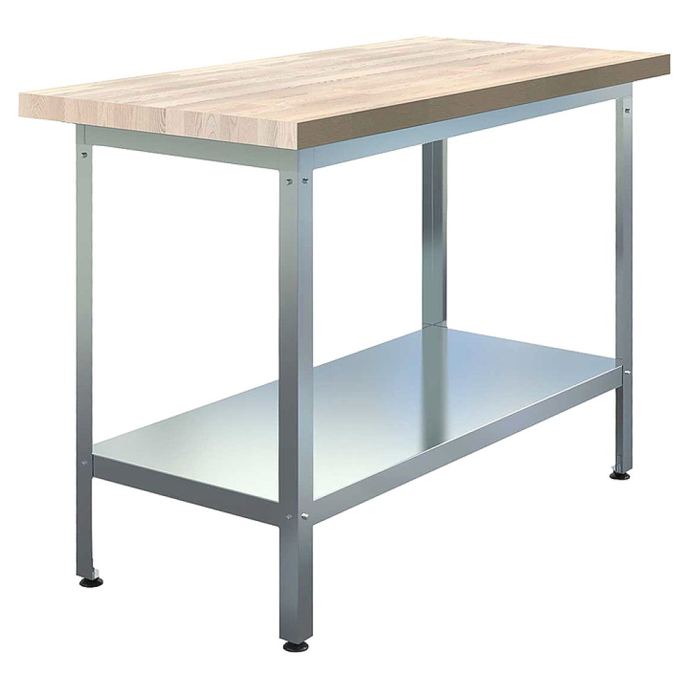 Производственный стол Assum СК-П-18/6 предназначен для работы с тестом и обработки сырья для хлебобулочных и кондитерских изделий на предприятиях общественного питания. Модель является сборно-разборной конструкцией и оснащена регулируемыми по высоте опорами, компенсирующими неровности пола. Полка усилена ребром жесткости. Рамка столешницы, полка, ребро жесткости, ножки - из нержавеющей стали AISI 430, столешница - из бука.
