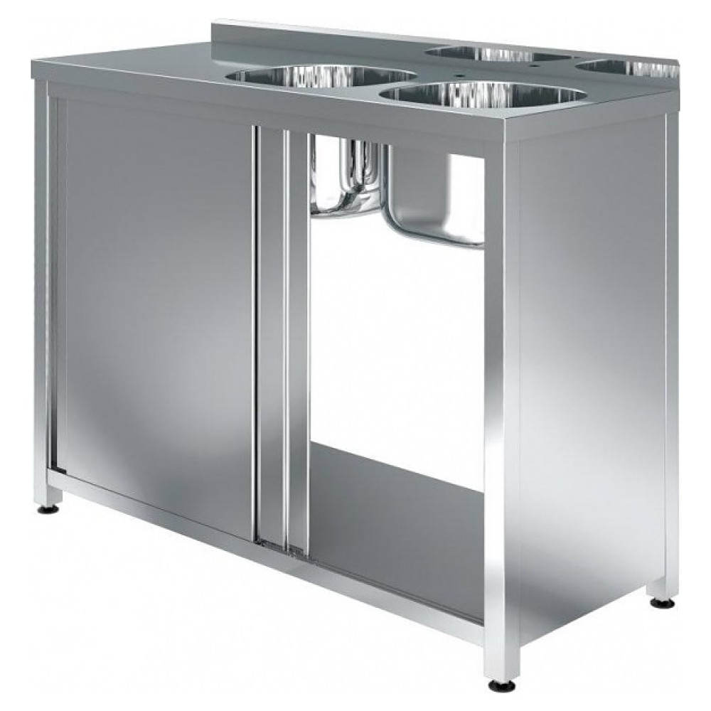 Моечная ванна Assum СПКБ-18/6-2ВП4 серии Премиум предназначена для мытья кухонного инвентаря на предприятиях общественного питания. Модель оснащена 2 раковинами справа, рабочей поверхностью слева, бортом, дверями-купе, боковыми стенками, отверстием под смеситель и выпуском. Цельнотянутые раковины выполнены из высококачественной нержавеющей стали AISI 304, столешница – из нержавеющей стали AISI 430 с усилением из ламинированной древесно-стружечной плиты, боковые стенки, двери и полка – из нержавеющей стали AISI 430, сварной каркас – из профиля трубы квадратного сечения (опоры) и углового профиля из нержавеющей стали AISI 430, подпятники опор – из прочного пластика.