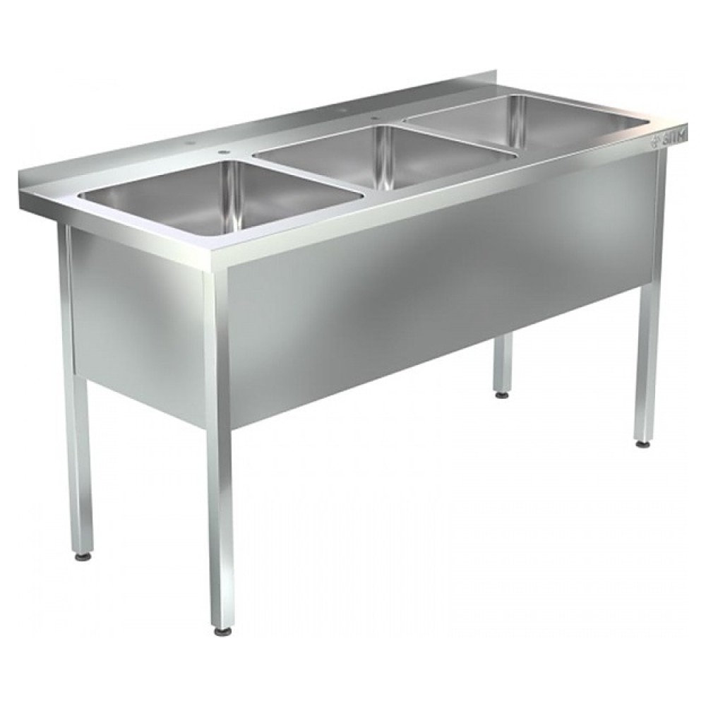 Моечная ванна Assum ВМЦ-П2-3/400 Н серии Премиум-2 предназначена для мытья кухонного инвентаря на предприятиях общественного питания. Модель оснащена 3 раковинами, фартуком с 3 сторон, бортом, 2 отверстиями под смеситель и выпуском. Цельнотянутые раковины выполнены из высококачественной нержавеющей стали AISI 304, столешница – из нержавеющей стали AISI 430, сварной каркас – из профиля трубы квадратного сечения из нержавеющей стали AISI 430, подпятники опор – из прочного пластика.