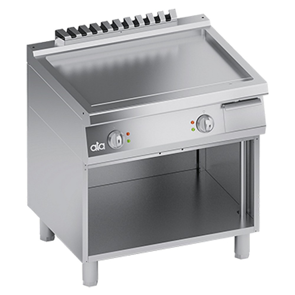 Электрическая жарочная поверхность АТА LOW-BUILT EL. GRIDDLE PLATE 1M SMOOTH PLATE + OPEN CABINET предназначена для приготовления мяса, рыбы, овощей и других продуктов методом жарки на предприятиях общественного питания и торговли. Модель оснащена сливным ящиком для жира и регулируемыми по высоте ножками. Рама и ножки изготовлены из нержавеющей стали, атермические ручки - из пластика.