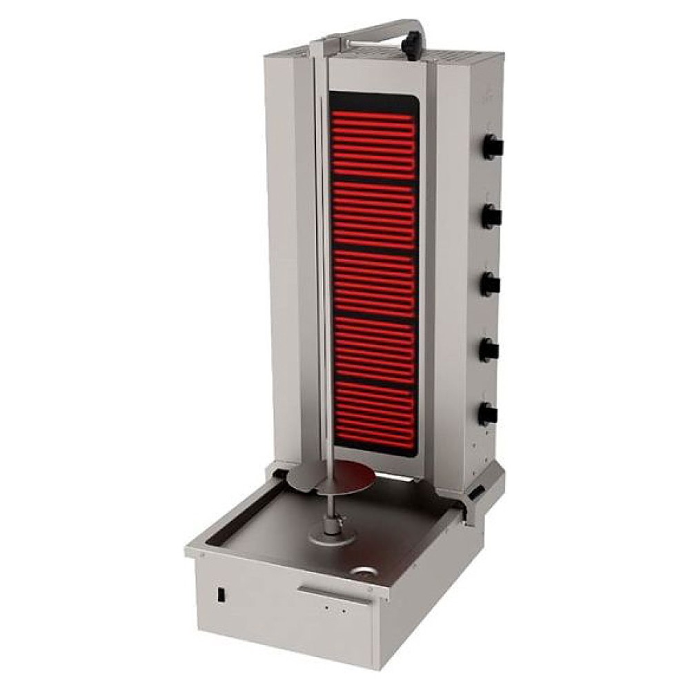 Гриль для шаурмы Atalay ADE-5A используется на предприятиях общественного питания и торговли для приготовления мясной начинки для шаурмы. Модель оснащена нижним электроприводом, вращающимся в обе стороны. Корпус выполнен из нержавеющей стали.