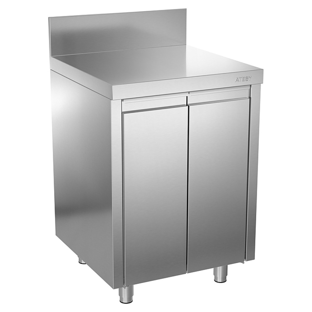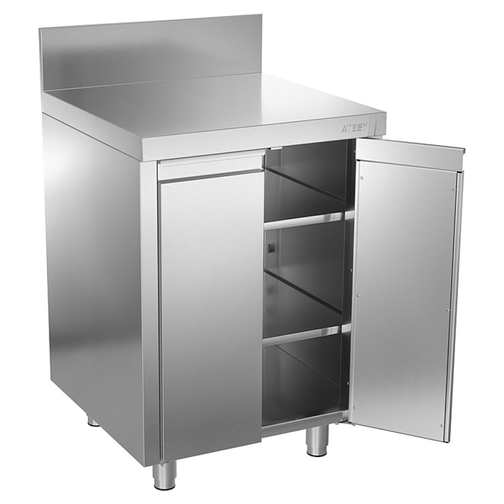 Производственный стол ATESY СТ-С-1.150-950.600-02-Р-2П серии Стандарт используется на предприятиях общественного питания и торговли для разделывания и обработки пищевых продуктов, а также в качестве вспомогательной поверхности для кухонного оборудования. Модель оснащена 2 распашными дверцами и 2 переставными полками. Изделие выполнено из легированной стали, столешница дополнительно укреплена листом ламинированной древесностружечной плиты с внутренней стороны.
