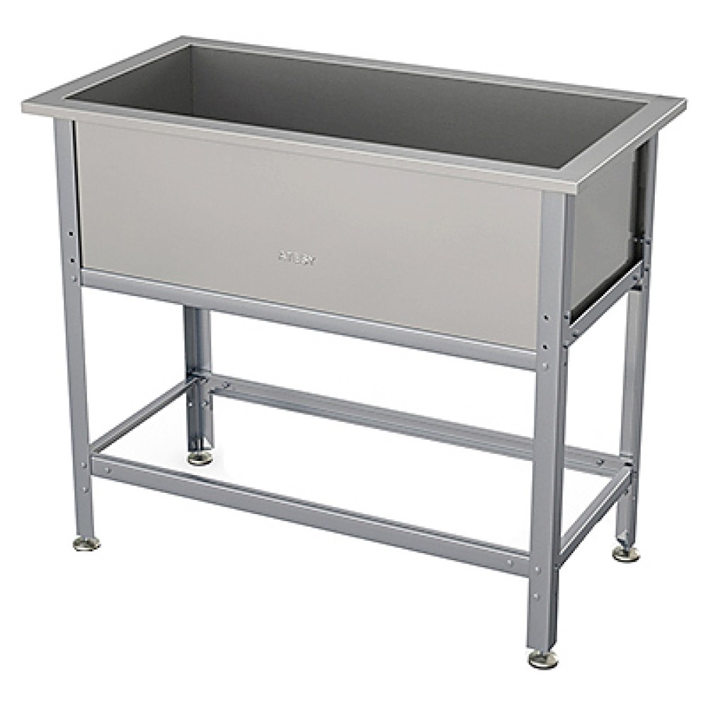 Моечная ванна ATESY ВСМ-С-1.910.430-02-Н серии Стандарт используется на предприятиях общественного питания и торговли для мытья столовой и кухонной посуды, инвентаря, овощей и фруктов, а также для оттайки замороженных пищевых продуктов. Каркас выполнен из уголка 40х40 мм нержавеющей стали AISI 430 толщиной 0,8 мм, ванна - из нержавеющей стали AISI 304 толщиной 0,8 мм, опоры регуляторов высоты ножек - из нержавеющей стали с пластиковым основанием.