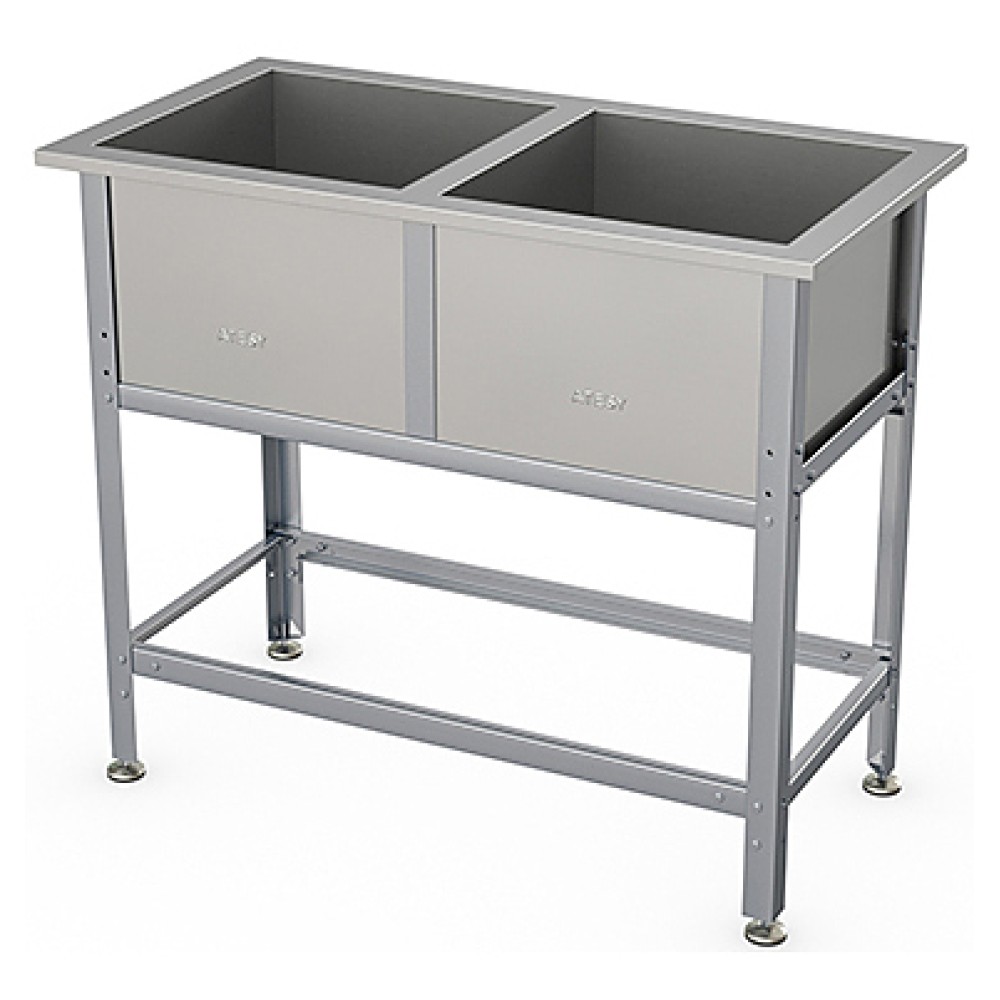 Моечная ванна ATESY ВСМ-С-2.600-02-Н серии Стандарт используется на предприятиях общественного питания и торговли для мытья столовой и кухонной посуды, инвентаря, овощей и фруктов, а также для оттайки замороженных пищевых продуктов. Каркас выполнен из уголка 40х40 мм нержавеющей стали AISI 430 толщиной 0,8 мм, ванна - из нержавеющей стали AISI 304 толщиной 0,8 мм, опоры регуляторов высоты ножек - из нержавеющей стали с пластиковым основанием.