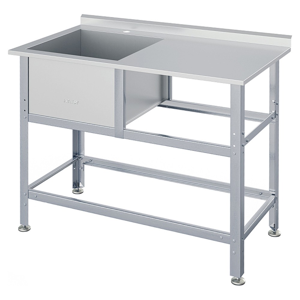 Моечная ванна ATESY ВСМС-Б-1Л.530-1210.680-1-02 серии Бюджет используется на предприятиях общественного питания и торговли для мытья столовой и кухонной посуды, инвентаря, овощей и фруктов, а также для оттайки замороженных пищевых продуктов. Каркас выполнен из профиля из оцинкованной стали толщиной 1,2 мм, ванна и рабочая поверхность - из нержавеющей стали AISI 430 толщиной 0,7 мм, опоры регуляторов высоты ножек - из нержавеющей стали.