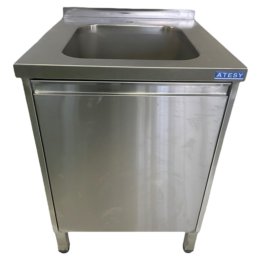 Закрытая моечная ванна ATESY СТМ-С-1-1-700.600-Р серии Стандарт используется на предприятиях общественного питания и торговли для мытья столовой и кухонной посуды, инвентаря, овощей и фруктов, а также для оттайки замороженных пищевых продуктов. Каркас выполнен из круглой сварной трубы из нержавеющей стали AISI 430 диаметром 40 мм, чаша ванны - из нержавеющей стали AISI 304, двери, боковые панели и столешница - из нержавеющей стали AISI 430, ножки стола - из нержавеющей стали AISI 430 с опорной частью из пластика.