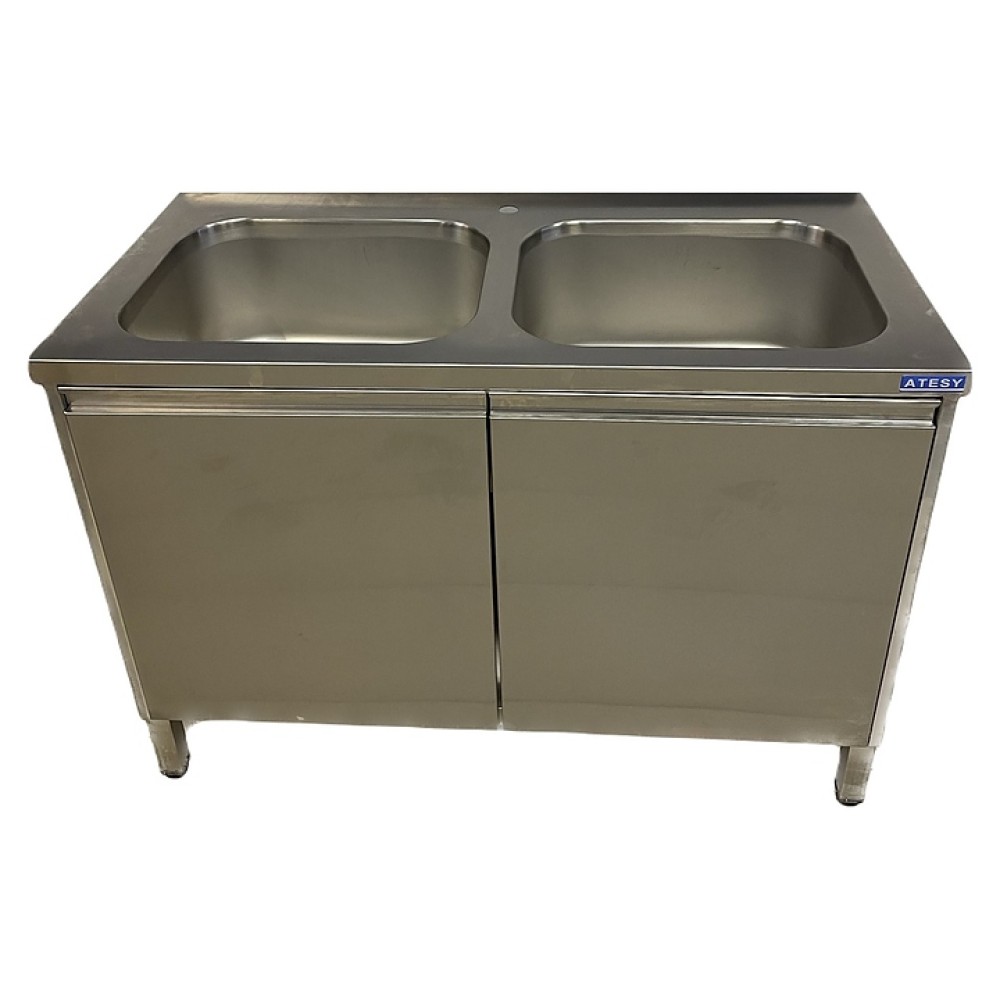 Закрытая моечная ванна ATESY СТМ-С-2-1000.600-02-Р серии Стандарт используется на предприятиях общественного питания и торговли для разделывания и обработки пищевых продуктов, мытья столовой и кухонной посуды, инвентаря, овощей и фруктов, а также для оттайки замороженных пищевых продуктов. Модель оснащена 2 распашными дверьми. Каркас выполнен из сварной трубы из нержавеющей стали AISI 430 диаметром 40 мм, чаши - из нержавеющей стали AISI 304, двери, боковые панели - из нержавеющей стали AISI 430, ножки - из нержавеющей стали AISI 430 с опорной частью из пластика.