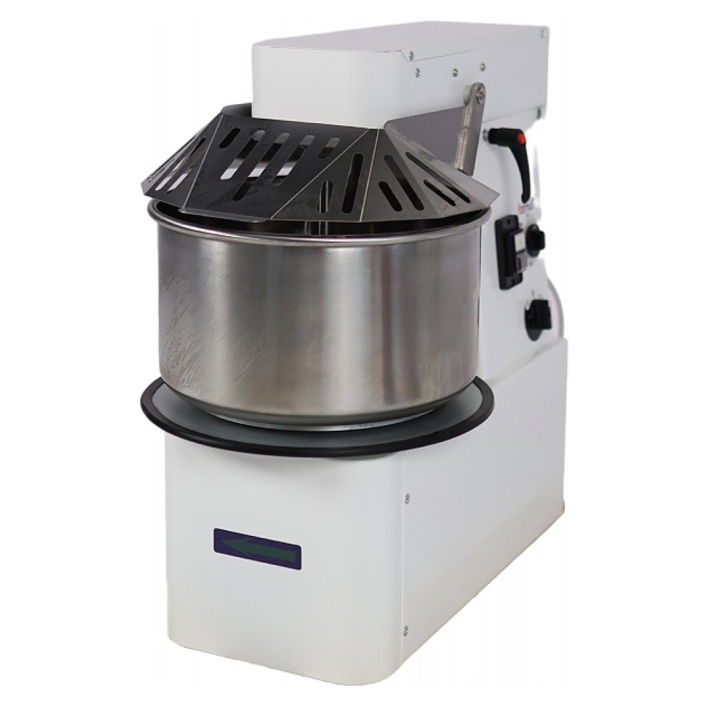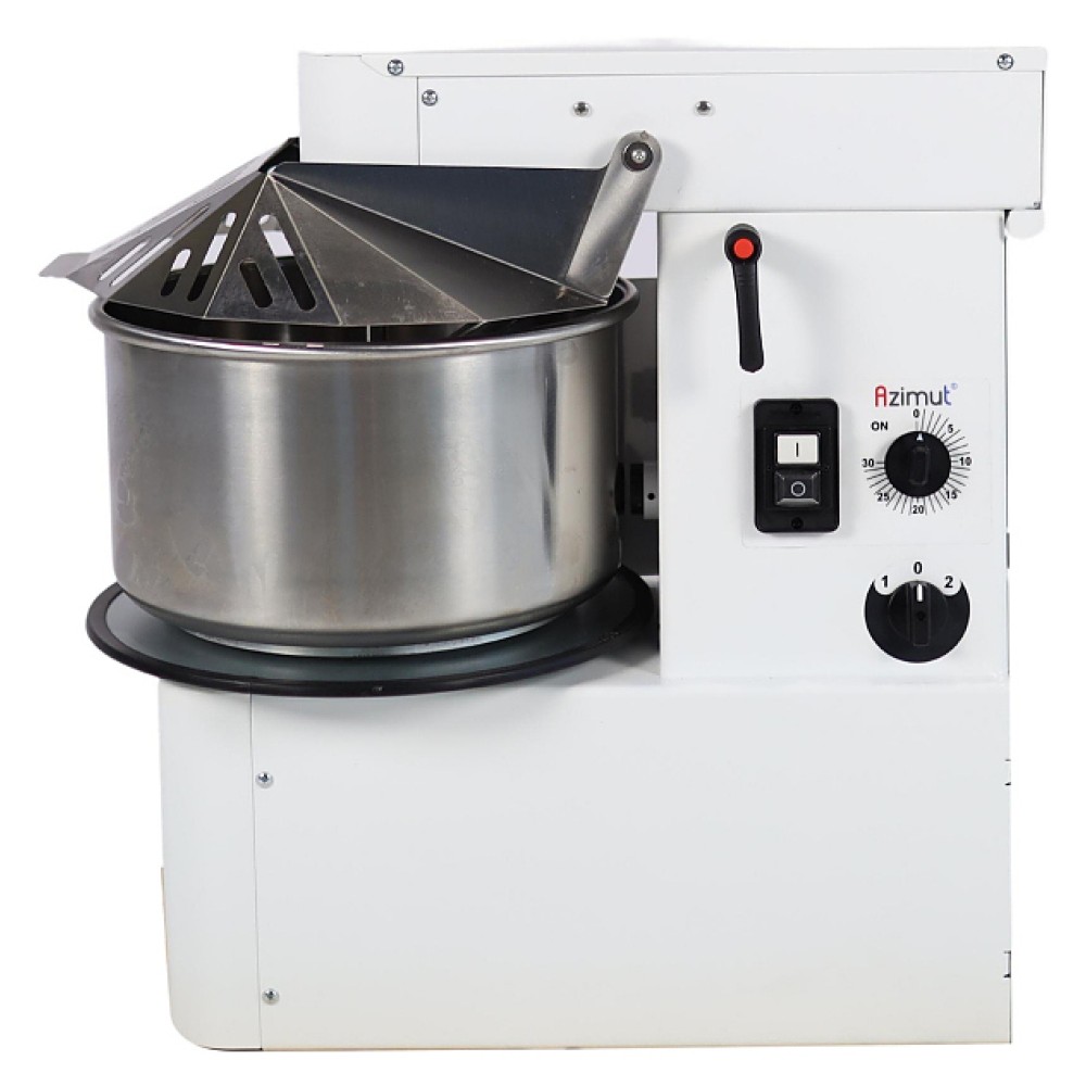 Спиральный тестомес Azimut MIXUP TER 20 2V EVO используется на предприятиях общественного питания и торговли для замешивания теста различной плотности, перемешивания соусов и начинок. Замешивание теста осуществляется одновременным вращением спирали и дежи. Модель оснащена подъёмной траверсой, рассекателем теста, электромеханической панелью управления, таймером и колесами. Дежа, спираль, центральная стойка и защитная решетка изготовлены из нержавеющей стали.