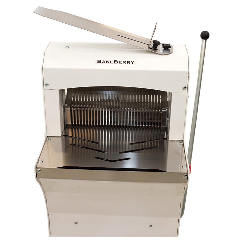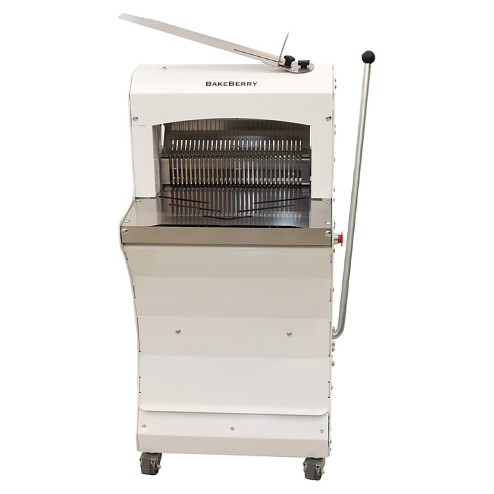 Хлеборезка BakeBerry FB-420 используется на предприятиях общественного питания и торговли, а также в производственных цехах для автоматизации процесса нарезания буханок хлеба и батонов на равные и ровные кусочки. Корпус выполнен из углеродистой стали и покрыт молотковой эмалью, толкатель и разделочный стол - из нержавеющей стали.
