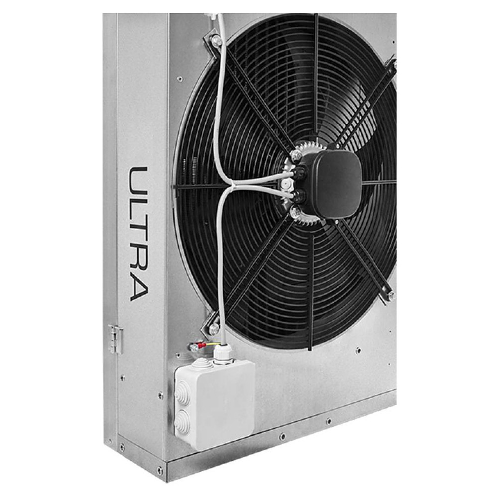 Воздушная завеса Ballu BHC-U15W40-PS серии Ultra предназначена для защиты помещений с высоким уровнем влажности и загрязнения от проникновения холодного воздуха. Модель оснащена 1 режимом нагрева, 3 режимами вентиляции, механической регулировкой температуры и электронным термостатом. Управление осуществляется при помощи автоматических выключателей без необходимости приобретения дополнительных дорогостоящих шкафов коммутации. Поворотное сопло позволяет менять угол наклона воздушной струи для обеспечения лучшей защиты помещения даже при сильных порывах ветра, направленных перпендикулярно к плоскости проема. В качестве нагревательного элемента используется устойчивый к гидроударам медно-алюминиевый теплообменник с увеличенным шагом между ламелями, что снижает скорость засорения завесы и увеличивает интервалы между техническими обслуживаниями. Система крепления сопла Quicklock обеспечивает удобный доступ к теплообменнику для быстрой очистки без необходимости демонтажа завесы. Корпус выполнен из металла.