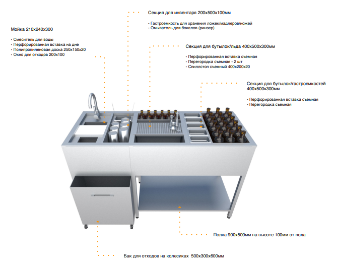 | Столешницабез борта | Страна производстваРоссия | Типкоктейльная станция |