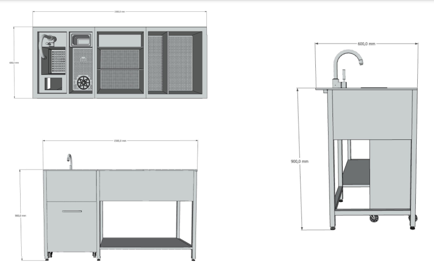 | Высота900 мм | Глубина600 мм | Ширина1500 мм |