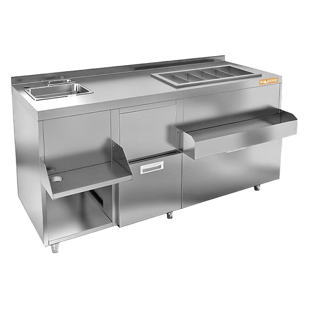 Барная станция HICOLD НБМКС-16/5БПК предназначена для комплектации модульных барных стоек на предприятиях общественного питания и торговли. Модель оснащена столешницей с задним бортом и устойчивыми опорами. Корпус и столешница выполнены из высококачественной нержавеющей стали AISI 430, столешница усилена ребрами жесткости. Изделие поставляется в собранном виде.
