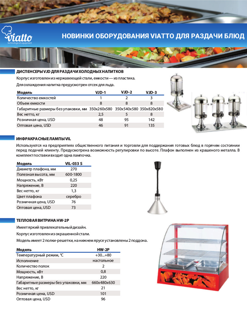 Диспенсер для сока VIATTO VJD-1 используется на предприятиях общественного питания и торговли для порционного розлива сока и других холодных напитков. Отсек со льдом позволяет поддерживать напитки в охлажденном состоянии. Корпус выполнен из нержавеющей стали, емкости - из пластика.