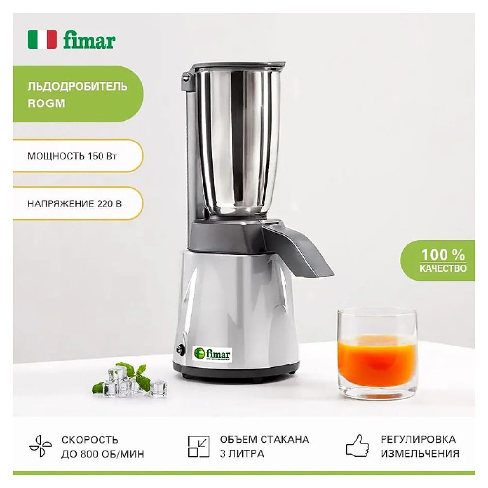 Измельчитель льда FIMAR ROGM235M используется на предприятиях общественного питания и торговли для дробления льда при приготовлении коктейлей кайпиринья, мохито и др. Модель оснащена микровыключателем на крышке и регулировкой размера кубиков льда. Корпус выполнен из окрашенного легкого алюминиевого сплава, стакан и ножевой блок - из нержавеющей стали.