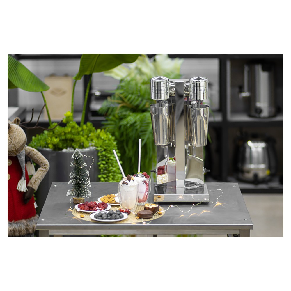 Миксер для молочных коктейлей Rosso HBL-018 используется на предприятиях общественного питания и торговли для приготовления шейков, муссов, коктейлей на основе молока, йогуртов или мороженого. Корпус выполнен из алюминия, стакан - из нержавеющей стали.