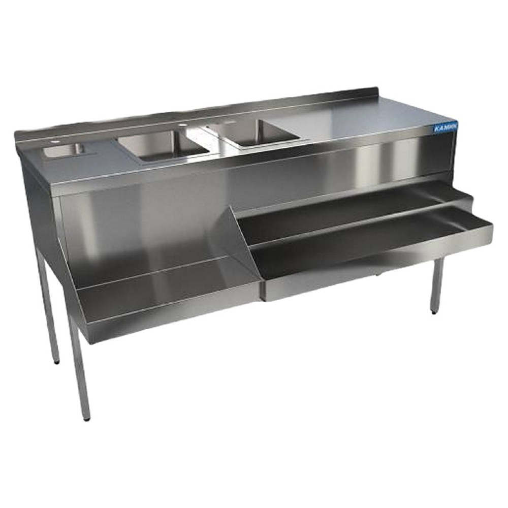 Барная станция КАМИК 1500х500(770)х785 мм предназначена для комплектации барных стоек на предприятиях общественного питания и торговли. Модель оснащена полкой для блендера и 2 рейлами для бутылок. Станция изготовлена из нержавеющей стали AISI 430 толщиной 1 / 1,5 мм и профиля 40х40 мм.