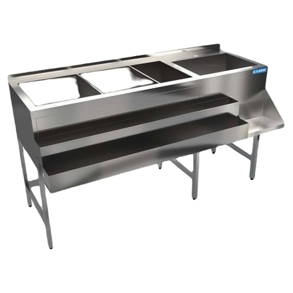 Барная станция КАМИК 1900х700х900 мм предназначена для комплектации барных стоек на предприятиях общественного питания и торговли. Модель оснащена откидным бункером слева, полкой для блендера справа и теплоизолированной ванной для льда. Корпус изготовлен из нержавеющей стали AISI 430 толщиной 1,5 мм и профиля 40х40 мм, столешница - из стали AISI 304 толщиной 1 мм.