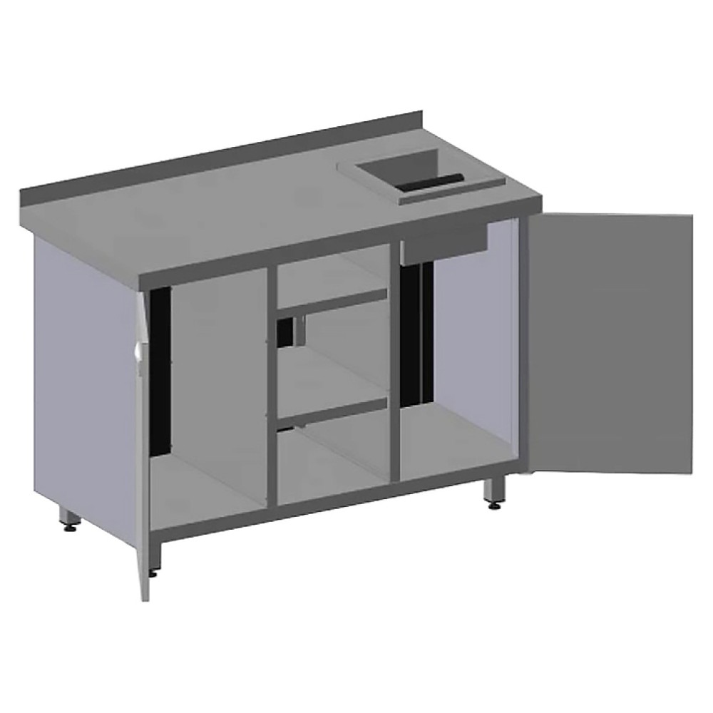 Барная станция для кофемашин Restoinox БСНКР-12/7-БП с нок-бокс предназначена для организации барного места на предприятиях общественного питания и торговли. Модель оснащена распашными дверями, бортом и 2 сплошными полками. Разборный корпус, полки и столешница выполнены из нержавеющей стали AISI 430, задняя стенка - из оцинкованной стали. Столешница усилена листом ЛДСП.
