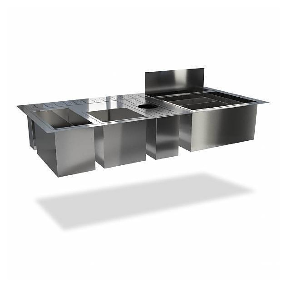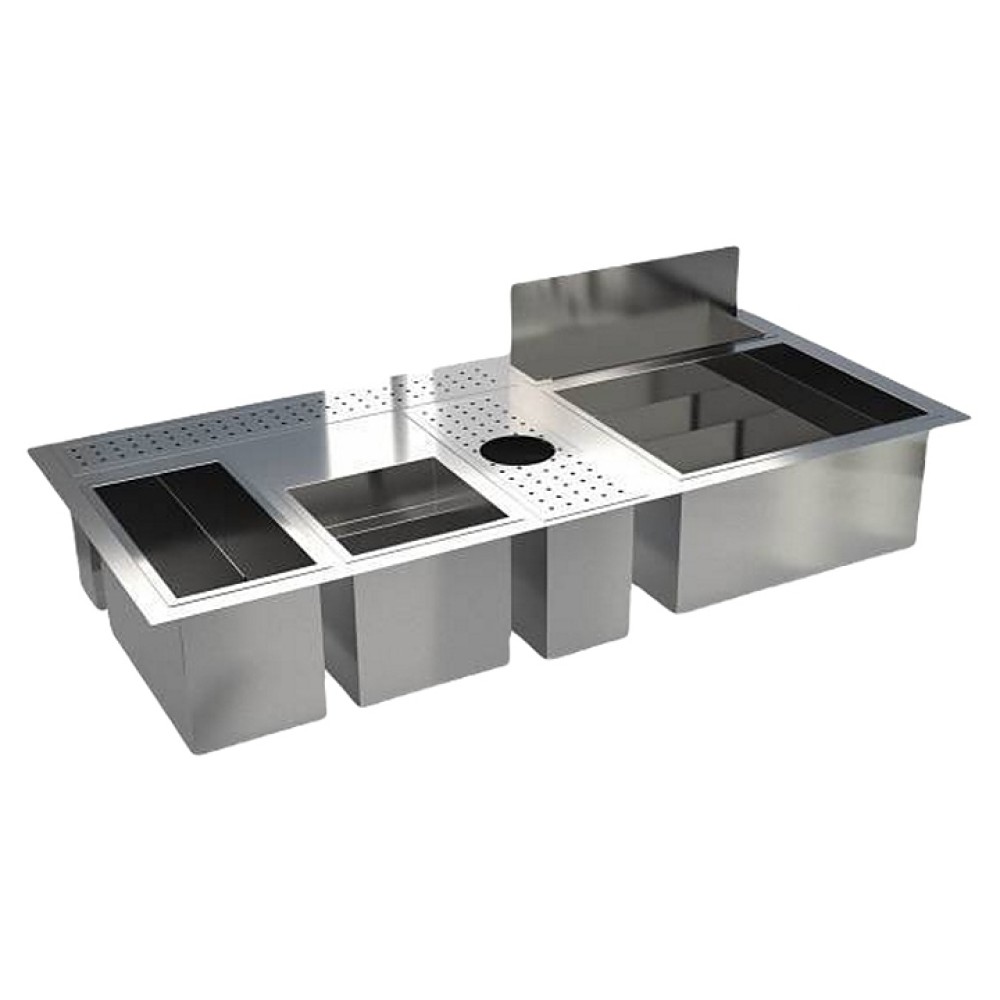 Встраиваемая барная станция КАМИК 1400х650х250 мм предназначена для комплектации барных стоек на предприятиях общественного питания и торговли. Модель оснащена теплоизолированной ванной для льда с перегородками и отверстием под омыватель и 2 сварными перегородками. Конструкция изготовлена из нержавеющей стали AISI 430 толщиной 1 мм и стали AISI 304 толщиной 1,5 мм.