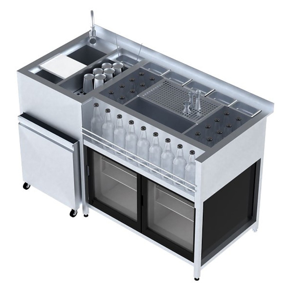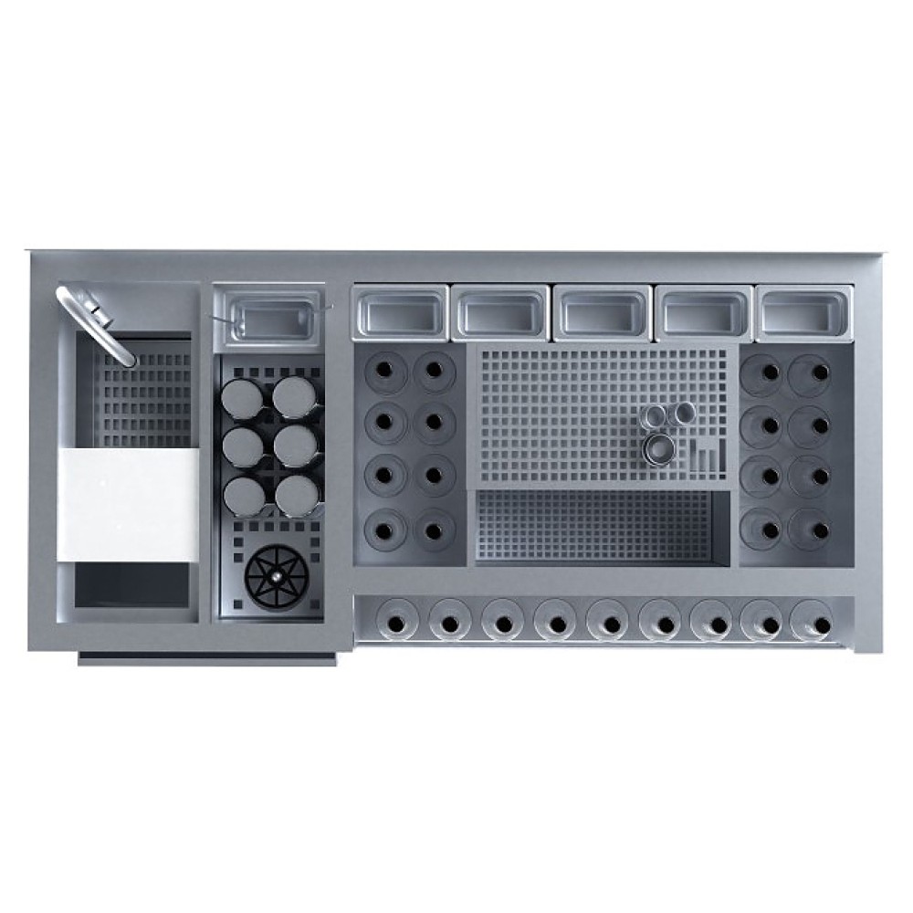 Барный модуль BARMADE Номер 2 предназначена для организации барного места на предприятиях общественного питания и торговли. Модуль состоит из зоны мойки, секции для инвентаря, рабочей секции и полки под холодильные шкафы. Модель оснащена регулируемыми по высоте ножками. Корпус выполнен из нержавеющей стали AISI430 толщиной 1 и 1,5 мм.