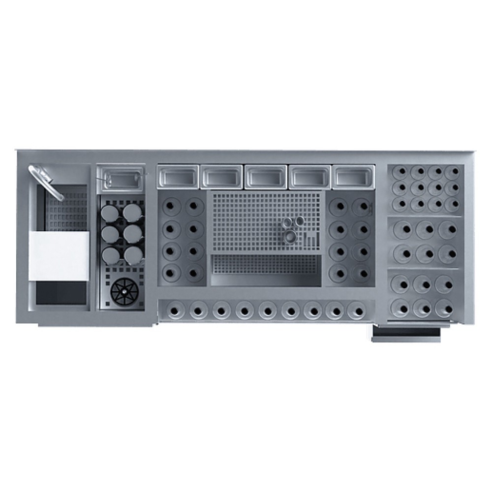 Барный модуль BARMADE Номер 2 предназначена для организации барного места на предприятиях общественного питания и торговли. Модуль состоит из зоны мойки, секции для инвентаря, рабочей секции, ликерной лесенки и полки под холодильные шкафы. Модель оснащена регулируемыми по высоте ножками. Корпус выполнен из нержавеющей стали AISI430 толщиной 1 и 1,5 мм.