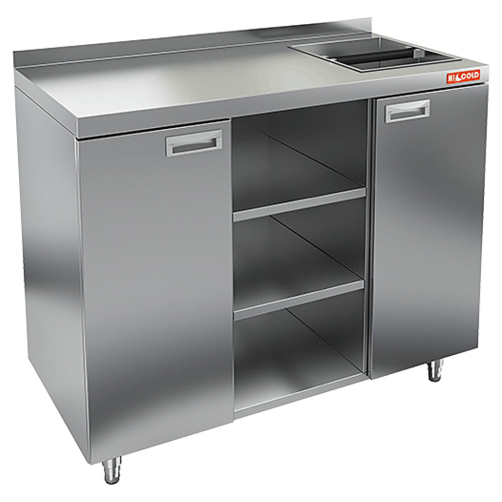 Стол для кофемашин HICOLD НБМКМО-12/7Б используется на предприятиях общественного питания и торговли для установки кофеварок и кофемашин, хранения аксессуаров и ингредиентов для приготовления кофе и кофейных напитков, а также сбора и временного хранения отходов после приготовления кофе. Столешница оснащена отверстием. Корпус выполнен из нержавеющей стали AISI 430, столешница - из нержавеющей стали AISI 430 толщиной 1 мм и усилена ребрами жесткости. Изделие поставляется в сборе.