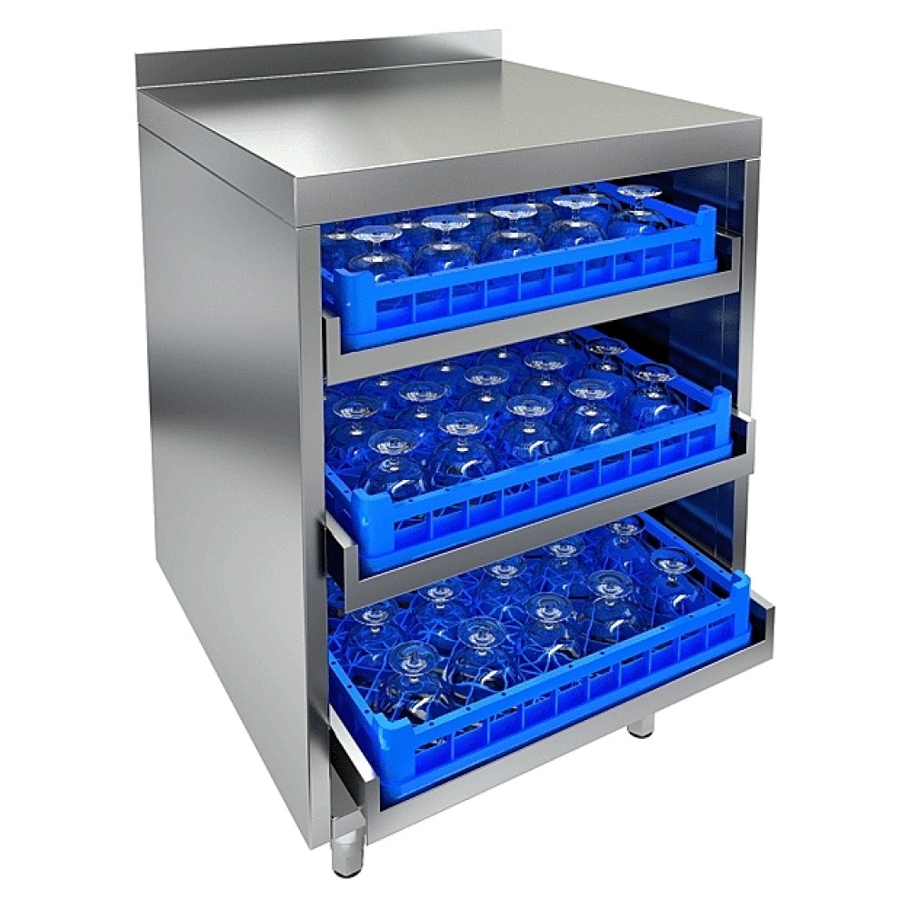 Стол открытый HICOLD НБМКБ-6/7Б предназначен для комплектации барных стоек, оборудован тремя полками для посудомоечных корзин. Столешница с бортом.