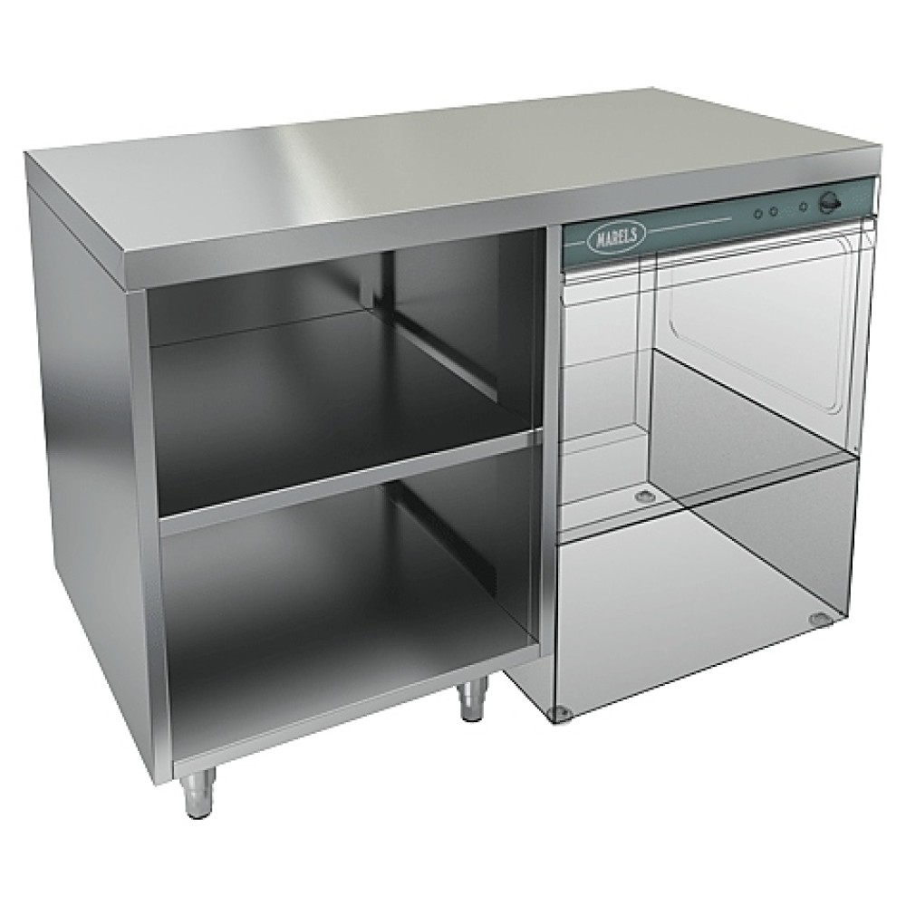Стол HICOLD НБМСЗОКП-12/5П предназначен для комплектации модульных барных стоек на предприятиях общественного питания и торговли. Модель оснащена закрытым с 3 сторон отделением с полкой для хранения корзин с бокалами, устойчивыми опорами и столешницей с расположенным с правой стороны крылом для установки под него посудомоечной машины. Корпус и столешница выполнены из высококачественной нержавеющей стали AISI 430, столешница усилена листом древесно-стружечной плиты (ДСП). Изделие поставляется в сборе.