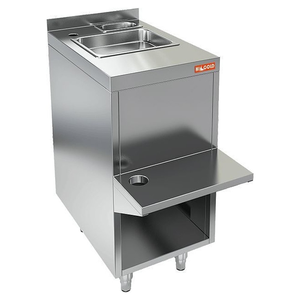 Пристенный стол HICOLD НБМБП-4/7Б предназначен для комплектации модульных барных стоек на предприятиях общественного питания и торговли. Модель оснащена закрытым отделением, рукомойником, фронтально расположенной полкой под блендер, столешницей с задним бортом и устойчивыми опорами. Корпус и столешница выполнены из высококачественной нержавеющей стали AISI 430, столешница усилена ребрами жесткости. Изделие поставляется в сборе.