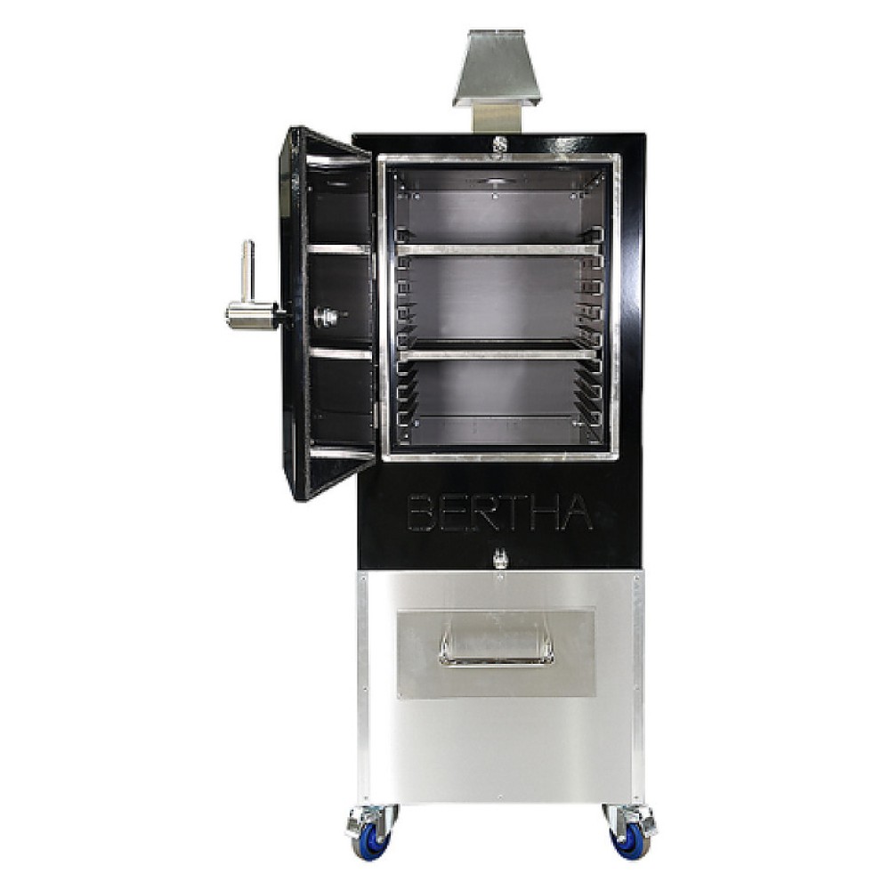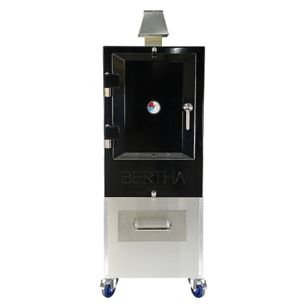 Угольная печь BERTHA-Red предназначена для приготовления широкого спектра блюд на предприятиях общественного питания. Модель оснащена ручкой, регулирующей температуру в камере, аналоговым термометром, встроенным поддоном для сбора жира, зольником и колесами. Корпус выполнен из британского чугуна и нержавеющей стали AISI 304.