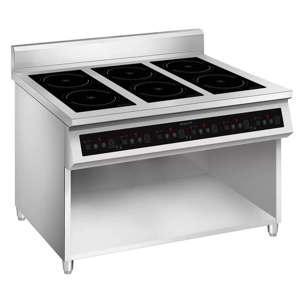 Индукционная плита BetterIH EW5/5T6-H9 предназначена для приготовления блюд в наплитной посуде на предприятиях общественного питания и торговли. Модель оснащена 6 конфорками, сенсорным управлением и таймером до 180 мин. Корпус выполнен из нержавеющей стали.