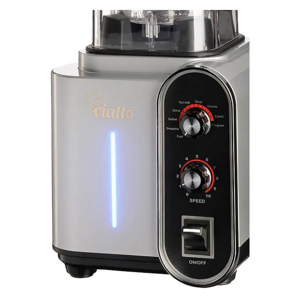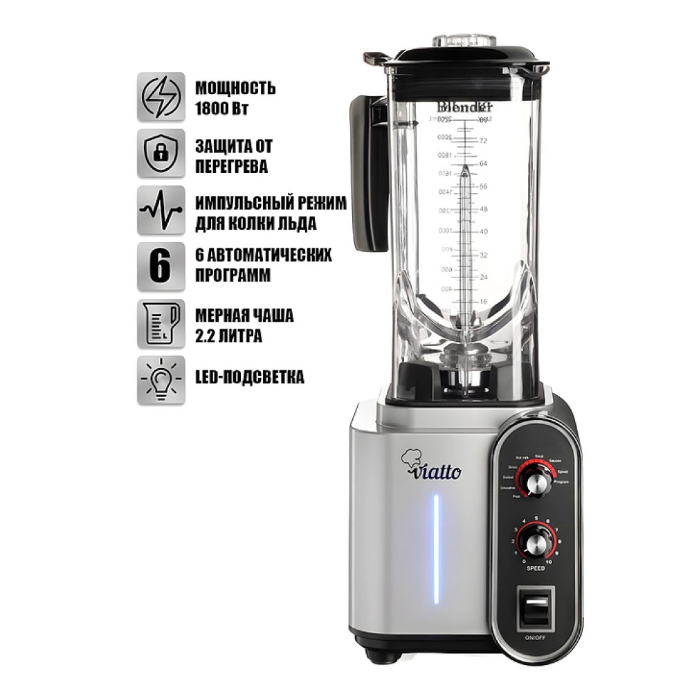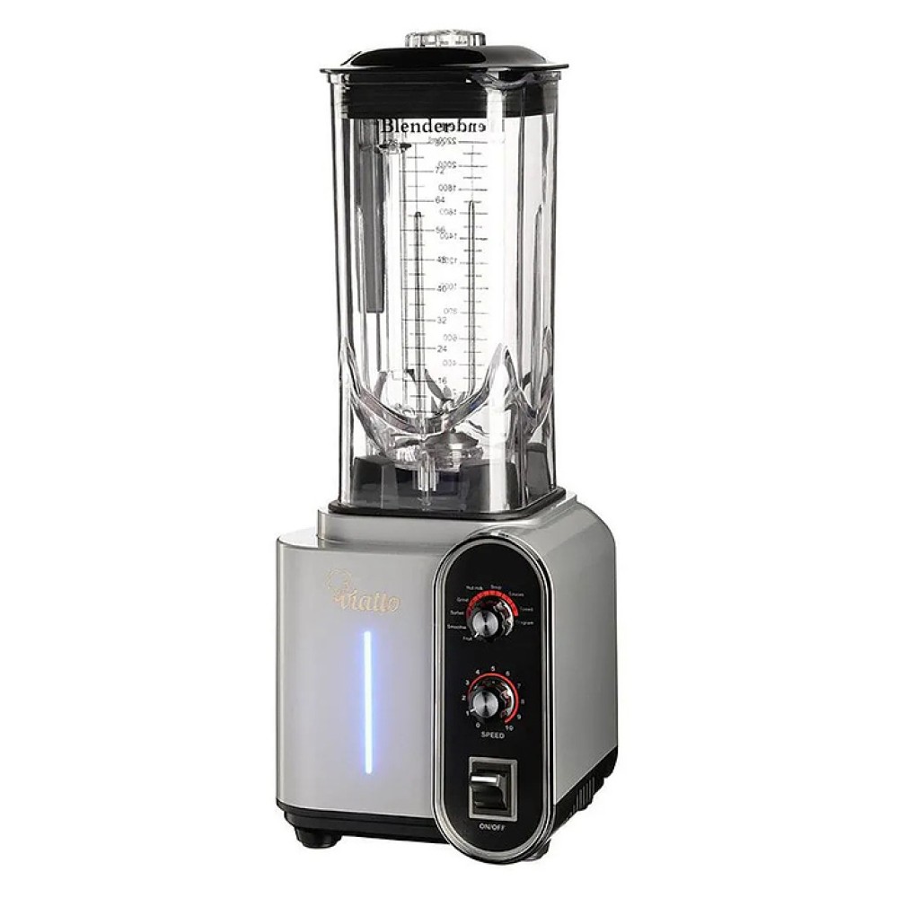 Блендер VIATTO VA-BL1899GR предназначен для измельчения продуктов и приготовления различных коктейлей, смузи, фраппе, соусов, фруктовых и овощных пюре и муссов на предприятиях общественного питания и торговли. Модель оснащена механической панелью управления с вариатором скорости. Корпус выполнен из пластика серого цвета, стакан - из прозрачного тритана, нож - из нержавеющей стали.