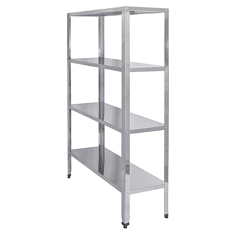 Кухонный стеллаж Braum СТ-11/5/180 предназначен для использования в производственных цехах предприятий общественного питания, супермаркетах, комбинатах пищевой промышленности для хранения столовой посуды, а также продуктов в подсобных помещениях. Модель оснащена 4 полками с П-образными ребрами жесткости. Стойки в форме уголка, полки и усиление полок выполнены из нержавеющей стали AISI 430.