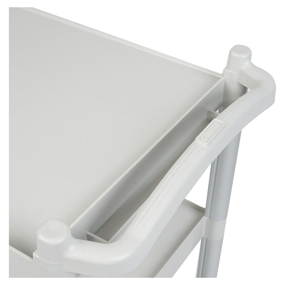 Тележка для обслуживания Cambro BC340KD 480 предназначена для транспортировки посуды, инвентаря, продуктов, пищевых отходов и предметов сервировки на предприятиях общественного питания, в медицинских учреждениях, санаториях и отелях. Изделие значительно облегчает и ускоряет процесс перемещения. Корпус выполнен из алюминия, полки - из полипропилена.