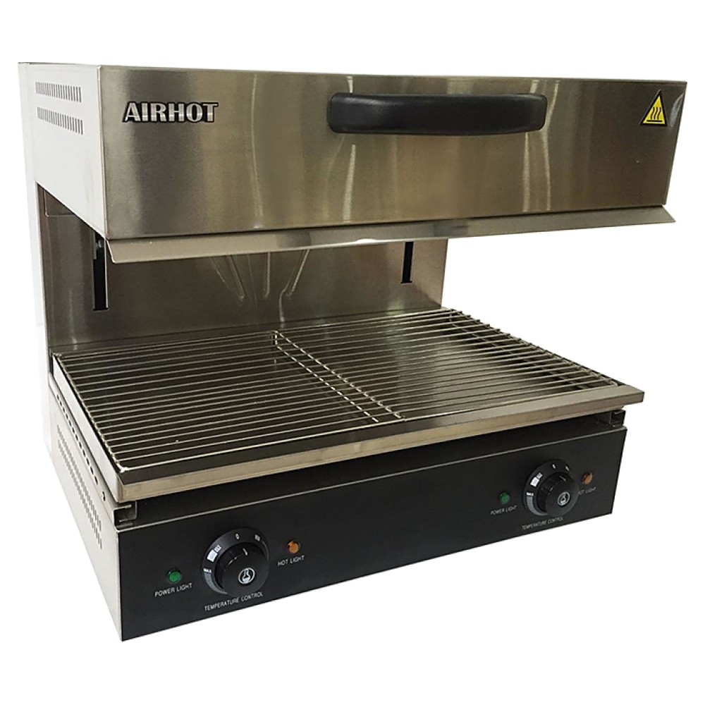 Гриль Salamander Airhot SGE-600 предназначен для обжаривания стейков и сосисок, приготовления сэндвичей, полуфабрикатов, подогрева булочек, гамбургеров, хот-догов и поддержания готовых блюд в разогретом состоянии на предприятиях общественного питания и торговли. Модель оснащена 2 зонами нагрева и съемным поддоном для сбора жира и крошек. Корпус выполнен из нержавеющей стали.