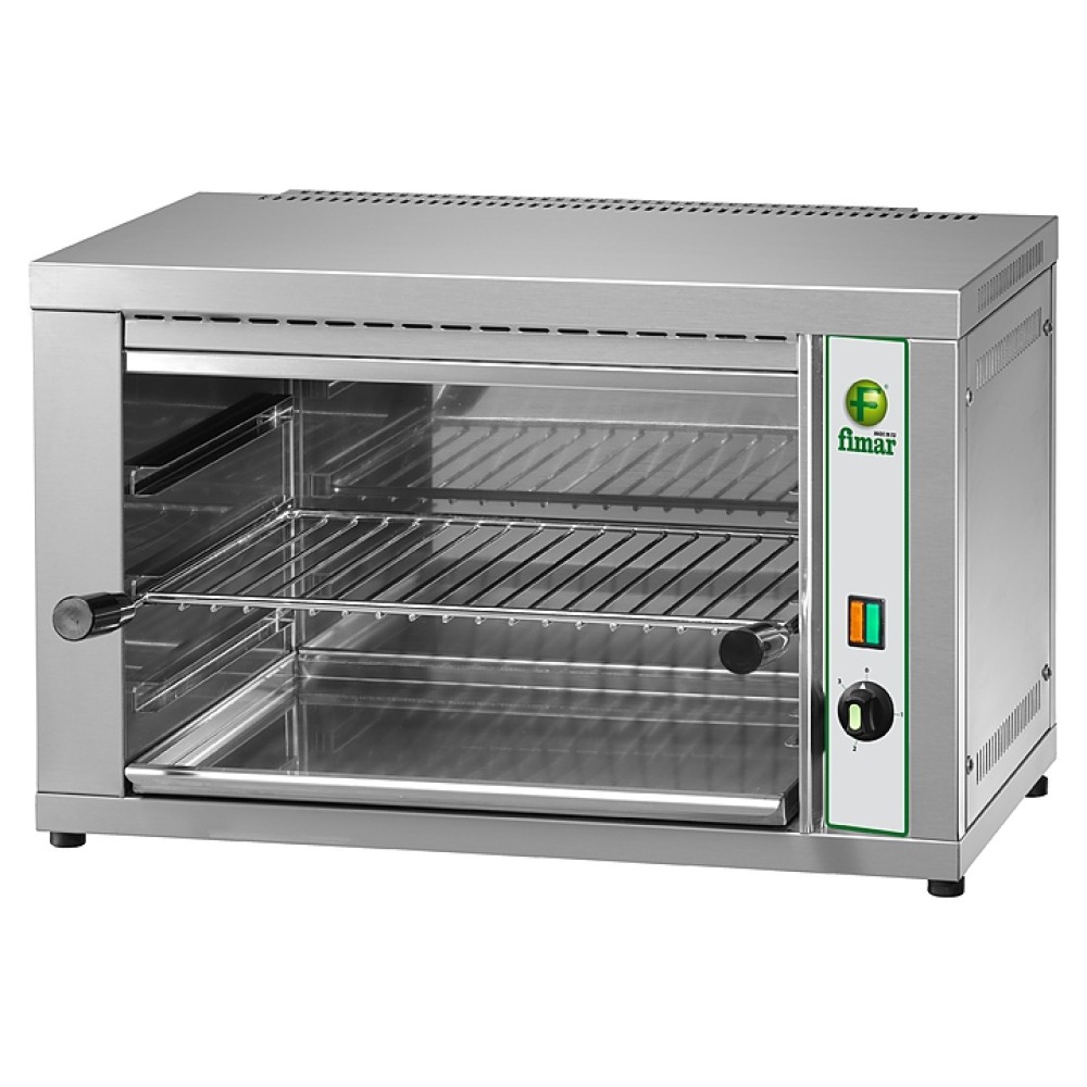 Гриль саламандер FIMAR RS40 предназначен для обжаривания стейков и сосисок, приготовления сэндвичей, полуфабрикатов, подогрева булочек, гамбургеров, хот-догов и поддержания готовых блюд в разогретом состоянии на предприятиях общественного питания и торговли. Закрытая с 3-х сторон модель оснащена регулируемой полкой-решеткой с 4 положениями по высоте и сливным поддоном. Корпус выполнен из нержавеющей стали.