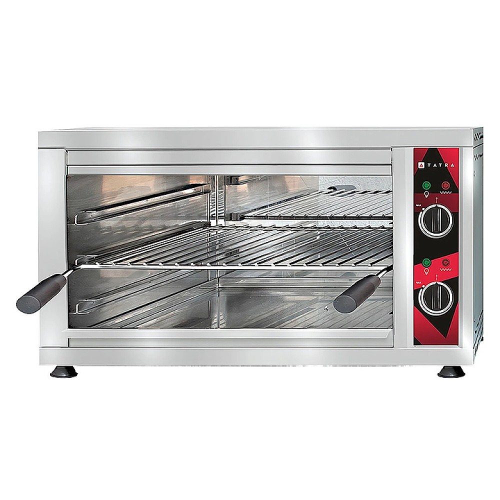 Гриль Salamander Tatra TSG 72 предназначен для обжаривания стейков и сосисок, приготовления сэндвичей, полуфабрикатов, подогрева булочек, гамбургеров, хот-догов и поддержания готовых блюд в разогретом состоянии на предприятиях общественного питания и торговли. Модель оснащена 2 зонами нагрева с независимым управлением, регулятором мощности и съемным поддоном для сбора жира и крошек. Корпус выполнен из нержавеющей стали.